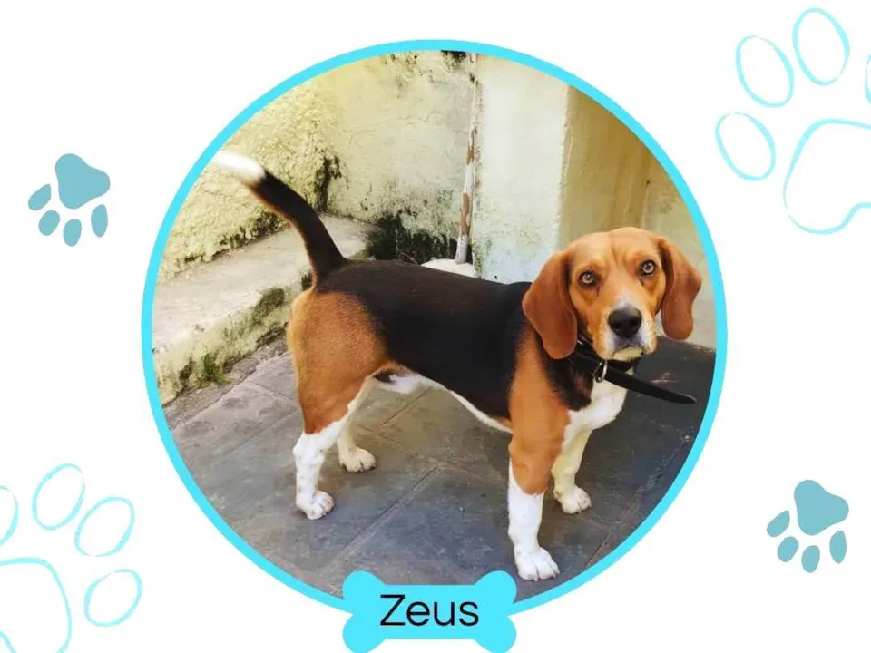 Conheça o Zeus, um adorável cão macho disponível para adoção. Ele é um Beagle de pelagem branca e preta e marrom( não está especificado na descrição porque não tinha a opção "Beagle"), com apenas 2 anos de idade. De porte médio, Zeus é perfeitamente adaptável a lares com quintal, onde pode aproveitar seu lado brincalhão e cheio de energia. Sua personalidade dócil e sociável o torna a companhia ideal para famílias, inclusive aquelas com crianças. Mas precisa ser filho único, não se adapta com outros animais.