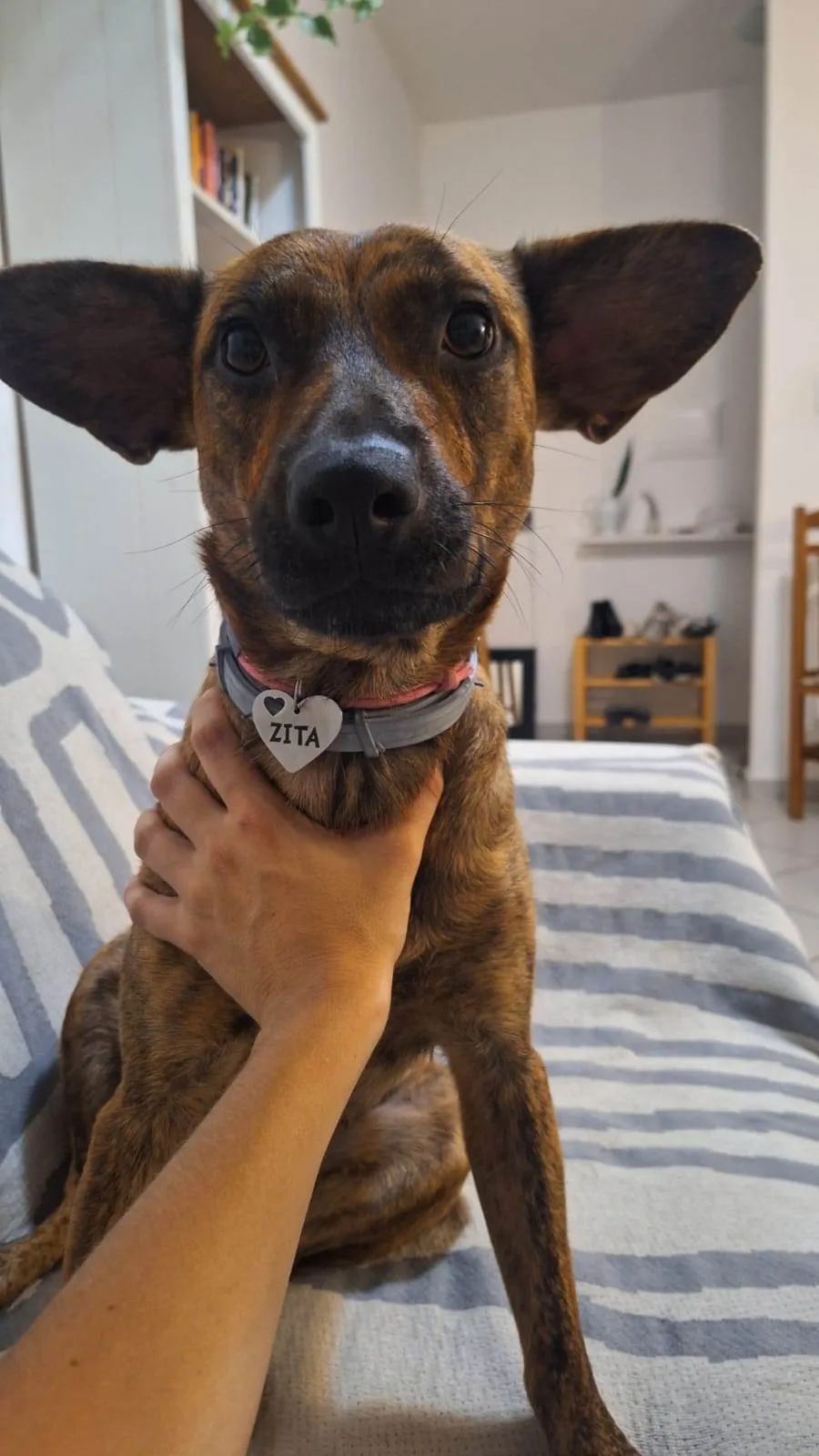 A Zita é jovem, brincalhona, agitada, atrapalhada até, e gosta muito de brincar com o Chico e de receber carinho (adora carinho no focinho). Mas o Chico passou a atacá-la toda vez que ela se aproxima da gente, toda vez que nós destinamos atenção e carinho a ela. ??