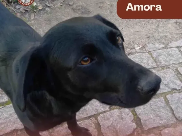 Essa é a Amora, charmosa, carinhosa e cheia de amor pra dar! Com aproximadamente 1 aninho e porte M (pesa em torno de 15kg), ela foi cruelmente abandonada em uma escola e, desde então, vive como cão comunitário, enfrentando diariamente os desafios da rua.