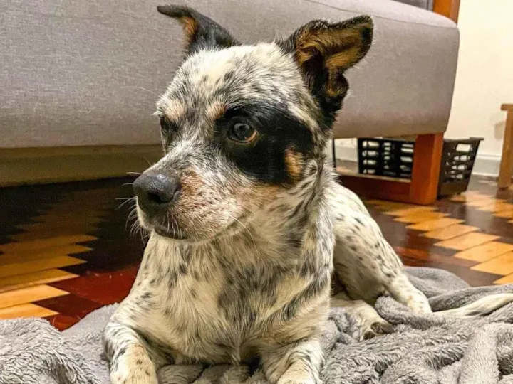 Cruza com australian cattle dog, muito dócil, aparentemente castrada, brincalhona e se dá bem com outros cães. Fiel e assustada com chuva.
