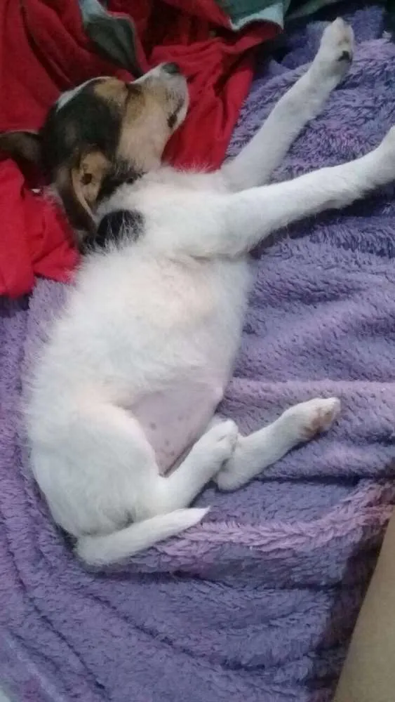 Ontem à noite eu e minha amiga encontramos uma cadelinha na rua , perto de uma rotula movimentada , eu a trouxe pra casa , porém não posso ficar com ela é minha amiga também não , eu já dei banho , ela está limpinha e já dei a primeira dose de remédio de vermes , tem aproximadamente um mês , se tiver interesse ou saiba de alguém que tenha por favor entrar em contato ??