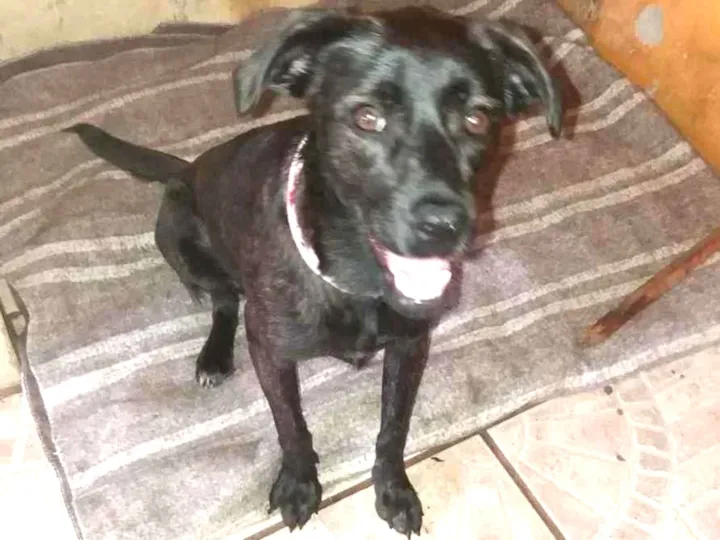 Cachorra preta muito dócil encontrada na Rua Fonseca Guimarães , rua no bairro Medianeira próxima a Rua Eurico Lara , Rua Mariano de Matos, rua José de Alencar. Estas ruas ficam nas imediações do antigo estádio Olímpico do Grêmio Futebol Clube. Apareceu dia 12 de dezembro.