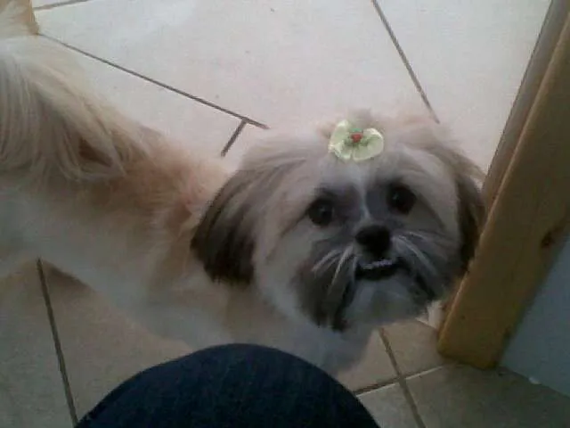Cachorro com 8 meses, tosado, somente cabeça e rabo peludos, cor caramela predominante. Tem uma faixa branca no meio dos olhos e o rosto dele é preto quase na totalidade. Embaixo do maxilar inferior tem uma faixa grande branca. Ele foi perdido/roubado dia 06/04 às 16hs do pátio de casa na rua Dr. Armando Barbedo, bairro Tristeza, Porto Alegre.
