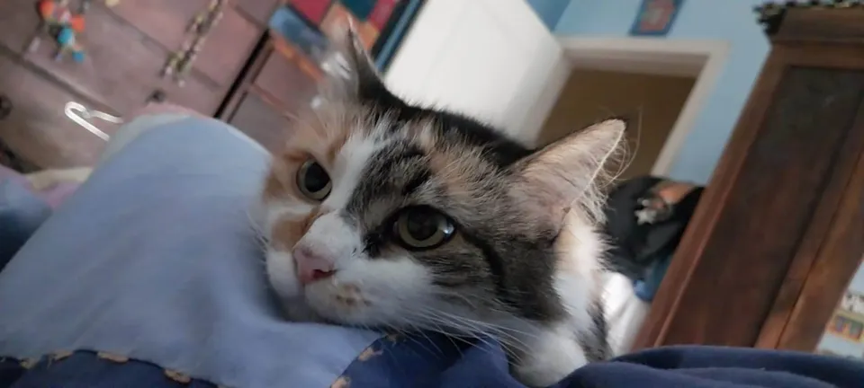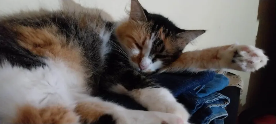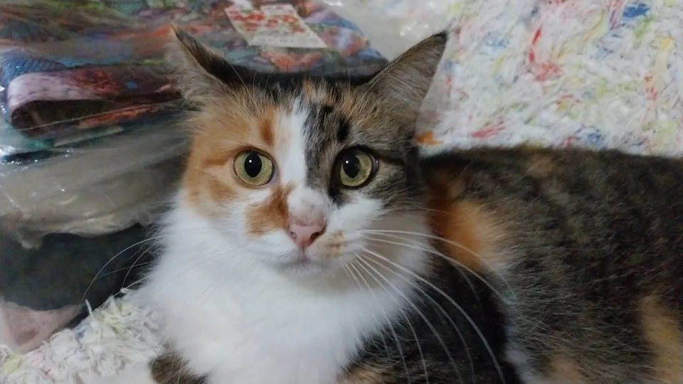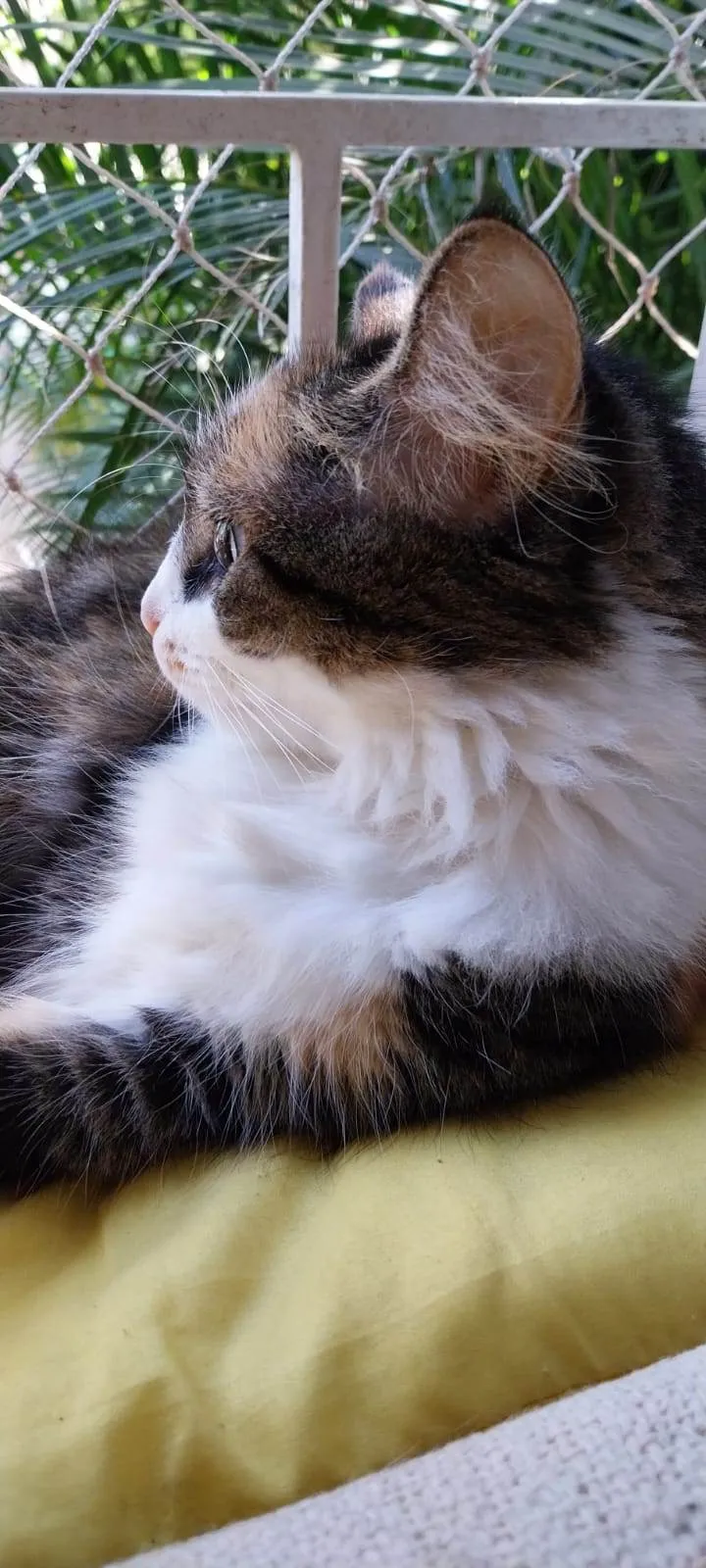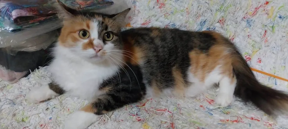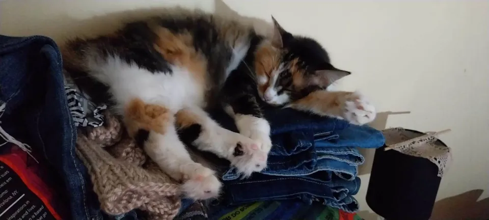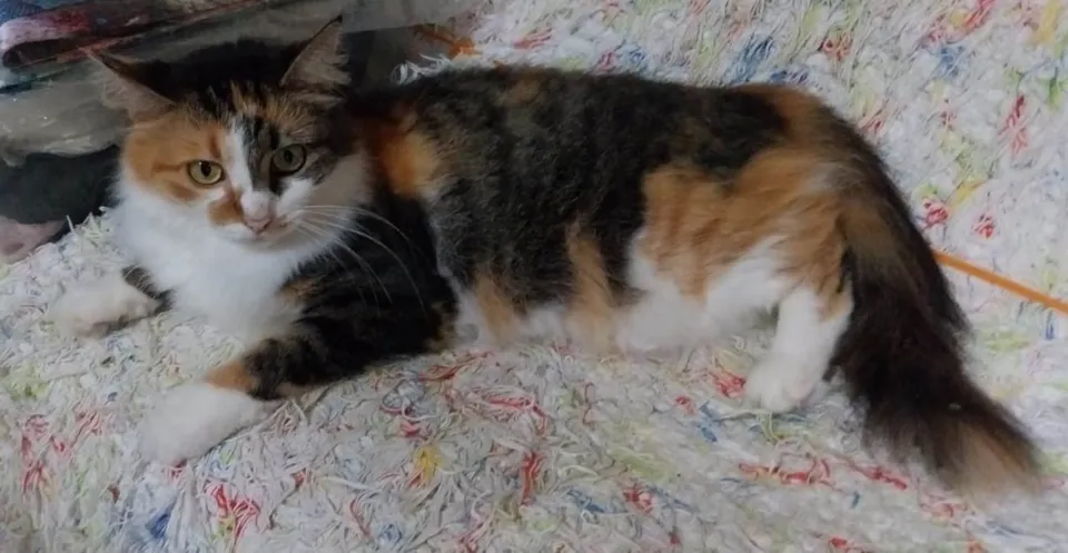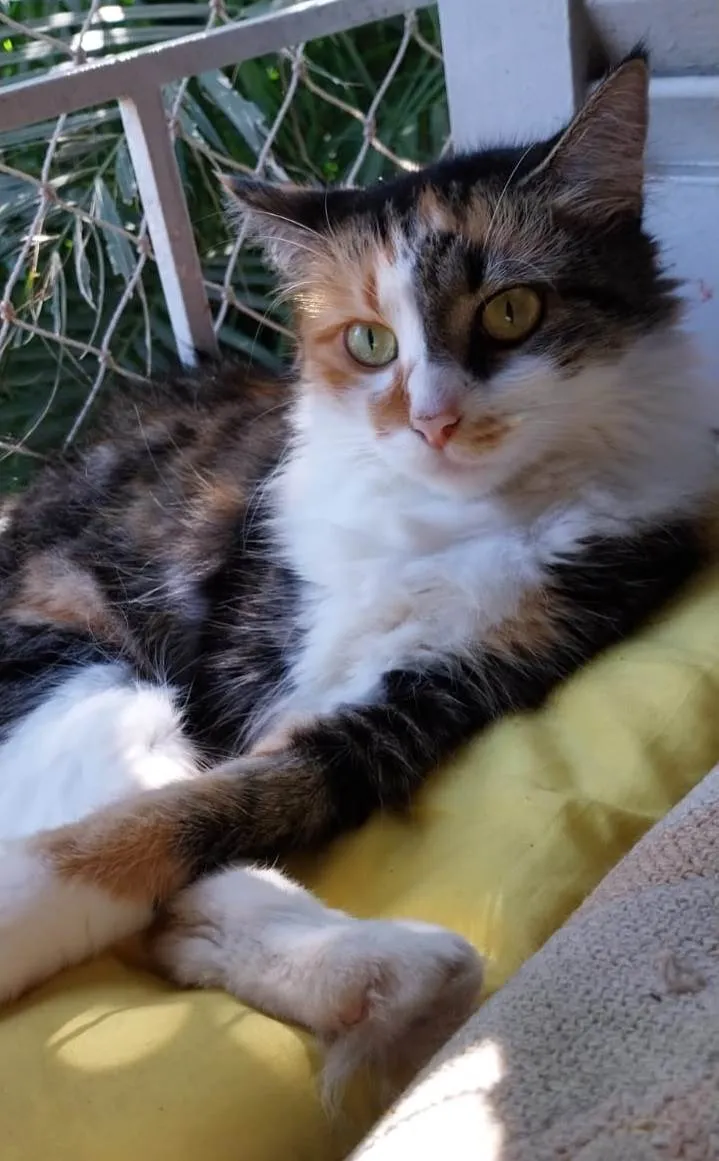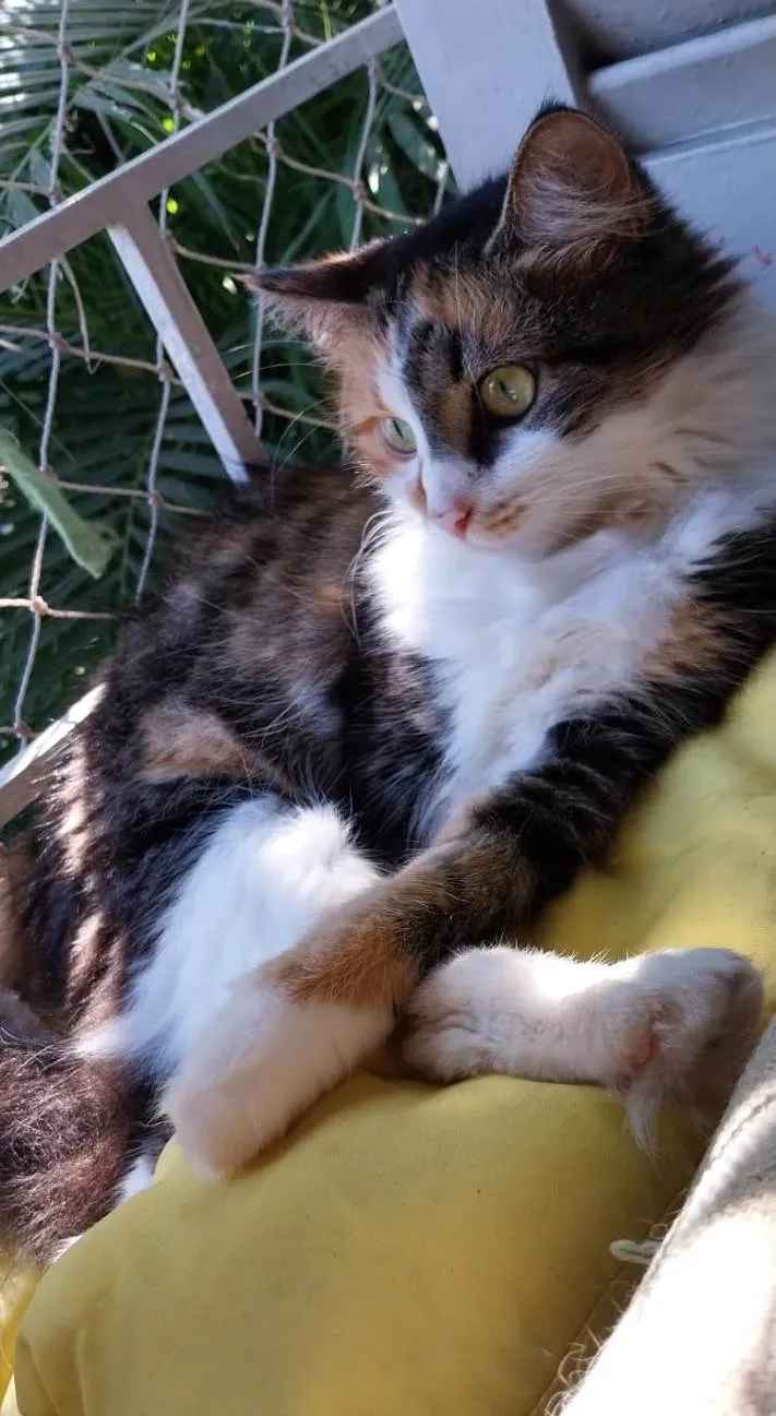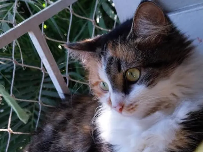 AMORA - Fêmea Tricolor maravilhosa, 2 anos, castrada, negativa para Fiv e Felv, socializada, muito peluda e charmosa. Aguarda por um lar cheio de amor! Lembrando ao futuro tutor que deverá residir em APARTAMENTO com TELAS, bem seguro, e sem rotas de fuga.