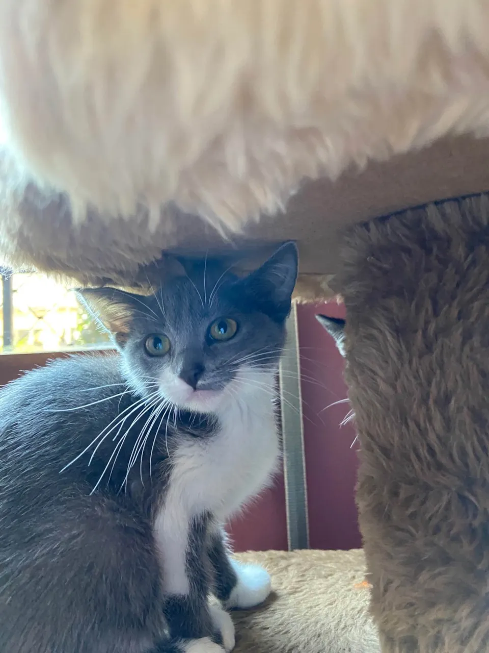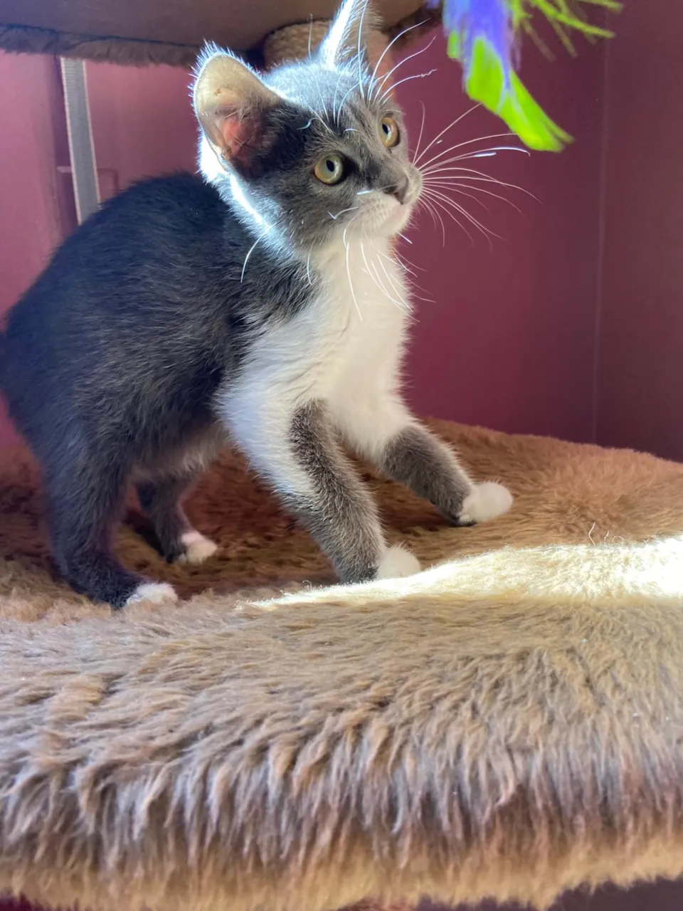 Será doada somente para lares telados! Tem por volta de 2 meses e meio! Teste fiv felv, vacinas e castração por conta do adotante