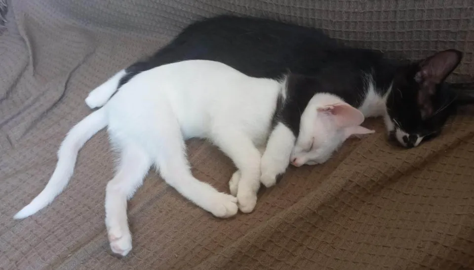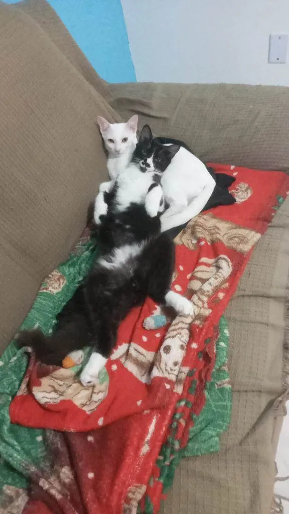 Casal de maninhos para adoção conjunta! Negativos fiv felv, vacinados e castrados! 10 meses! Ela é branca, ele frajola
