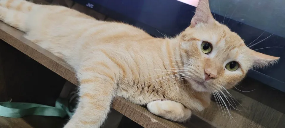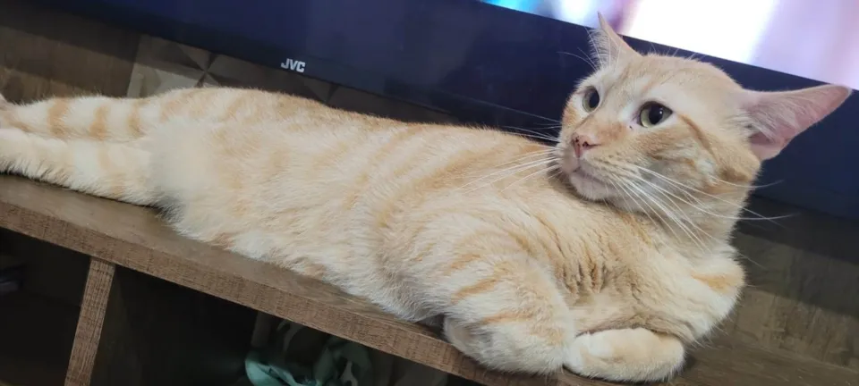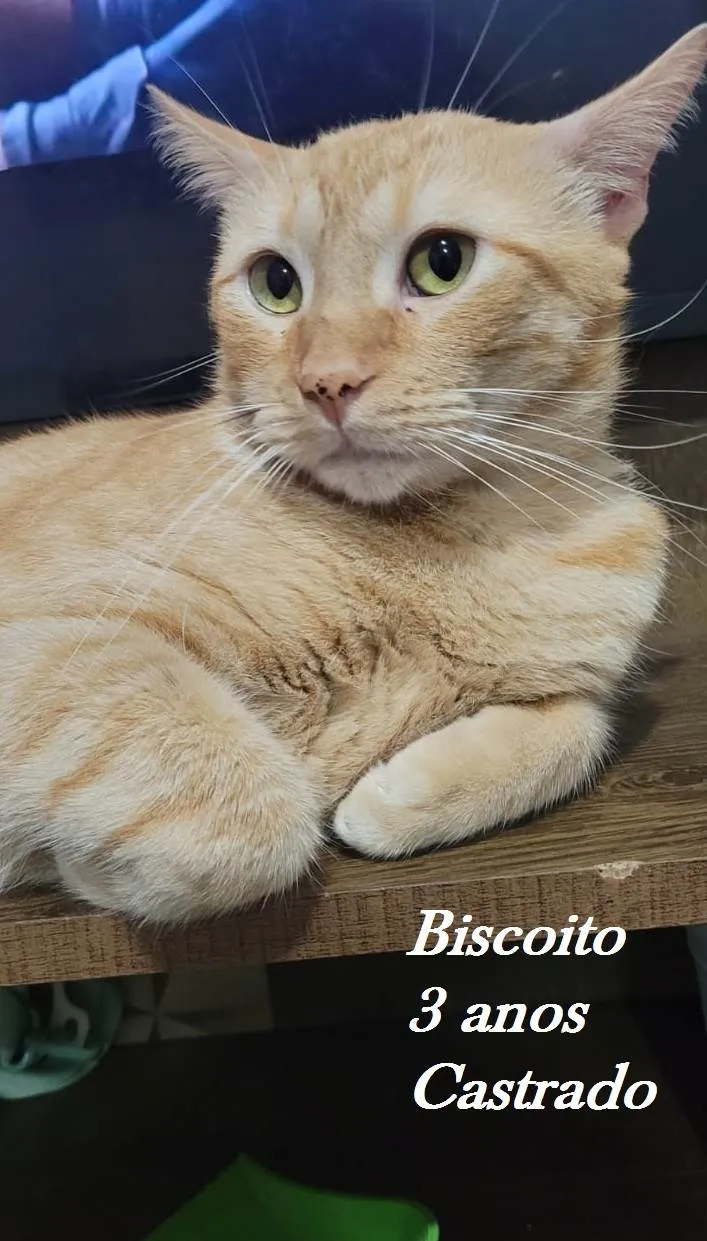BISCOITO - 3 anos, castrado, olhos verdes, muito dengoso, carinhoso, gosta da companhia de humanos, amassa um pãozinho como ninguém, muito mimado e querido. Será adotado apenas, por quem residir em LAR TELADO e SEGURO, sem rotas de fuga.