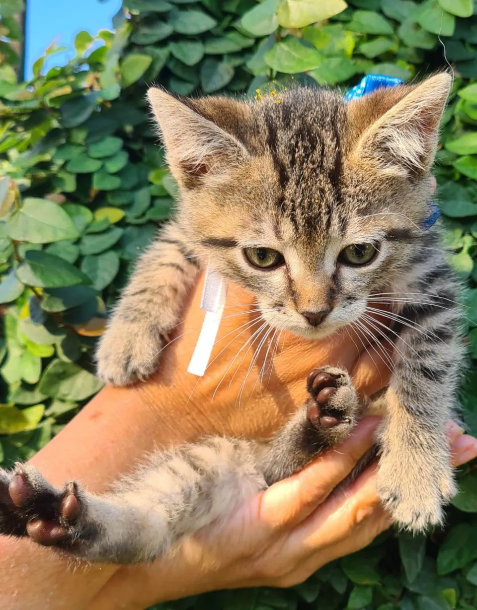 Altamente carinhoso, adora fazer um carinho no pescoço do humano, faz ronrom e pãozinho só em ouvir a tua voz! Macho em torno de 65 dias, tomou a 1ª dose de vermífugo, e foi "despulgado". Será doado apenas para apartamento telado ou casa sem acesso à rua mediante questionário de adoção. Teste fiv felv por parte do adotante, já fez e deu não reagente, castração na idade recomendada e deverá ser vacinado também pelo futuro adotante que deverá assinar termo de adoção responsável! Bruce irá trazer mais alegria aos seus dias! É todo amor! Contato com Isabel 51 998254431 só entre em contato se tiver tela no apto!