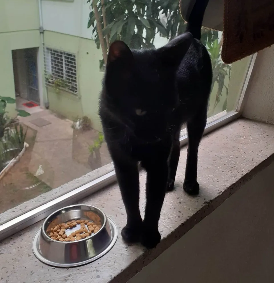 CHICO, +ou-15 meses, castrado, negativo p/Fiv e Felv. É um gato dócil, pede comida em todas as portas do condomínio que o acolheu. Ele precisa muito de um lar, cheio de amor e responsabilidade.