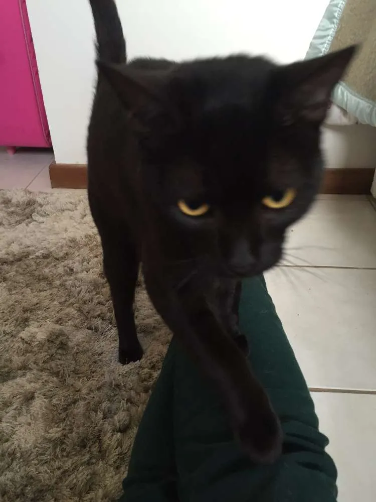 É um gato de pelagem preta, vacina e recentemente foi castrado. Ele têm 7 meses e está a procura de um lar, pois seus irmão já foram doados e por isso quer também esta chance de encontrar uma família. É carinhoso com as pessoas e gosta muito de brincar. Infelizmente não tenho condições de ficar com ele por isso estou procurando um lugar especial para ele, senão será devolvido para o lugar onde foi encontrado sem condições de sobreviver.