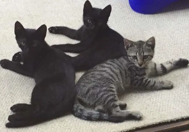 Meus filhotes são um casal pretinho e uma menina malhada.