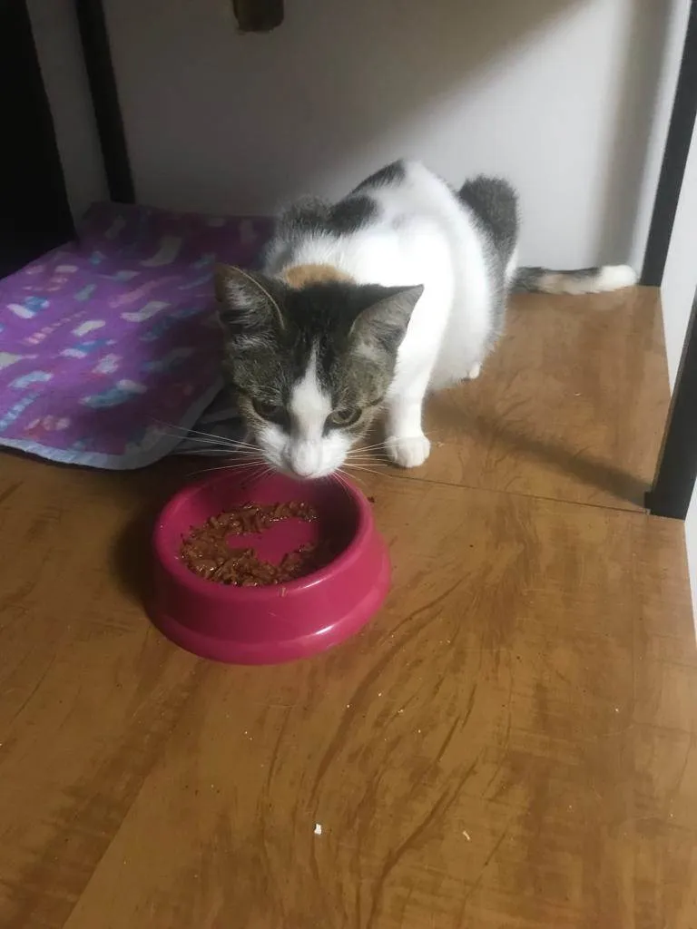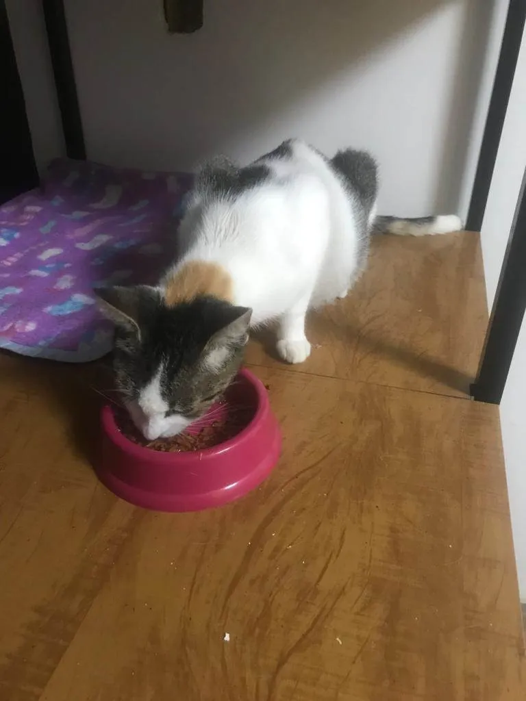 Esta linda tricolor vivia nas ruas, pelo bairro Belém Velho. Vi um pedido de LT para ela ter seus bebezinhos. Imediatamente, falei com a Tia Tania, para que ela pudesse abrigá-la. Esta é a primeira e última cria, de toda a sua vida. É bem nova, esta gata, além de ser uma mãe moderna. Ela amamenta, limpa as crias e se manda pra cima do guarda roupa. Já estou anunciando a Mãezinha para que, de repente, alguém a queira adotar. Estará disponível a partir de junho, após ser castrada.