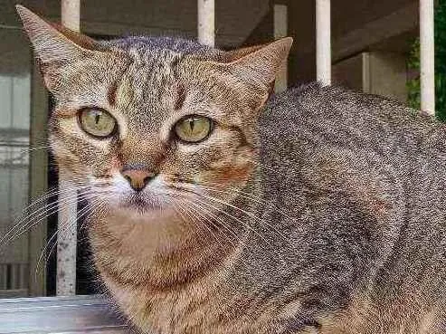 Veio de São Leopoldo, onde a tutora faleceu e os familiares jogaram a gata na rua, fecharam a casa e colocaram a venda. Ela miou dias e noites tentando entrar no antigo lar, com fome e sede, até que uma vizinha viu e pediu ajuda.
