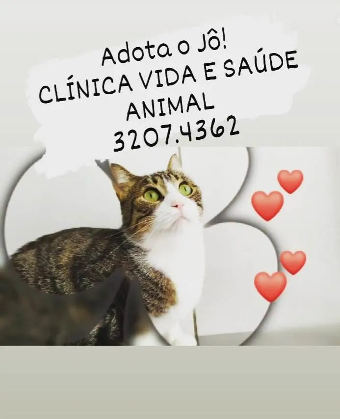 JÔ - Um ano, castrado, negativo p/Fiv&Felv. Muito dócil e carinhoso! Será entregue para quem residir em APARTAMENTO TELADO, sem rotas de fuga. Ele está na Clinica Vida e Saúde Animal, aguardando um novo tutor.