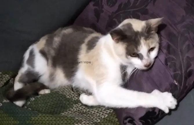 JOANA - +ou- 14 meses, CASTRADA, uma linda TRICOLOR. É uma fêmea muito calma, se dá bem com outros animais, gosta de carinho e também adora a companhia humana. É muito falante e ronrona ao ser tocada. O futuro adotante deverá mantê-la em LAR TELADO, sem acesso a rua.
