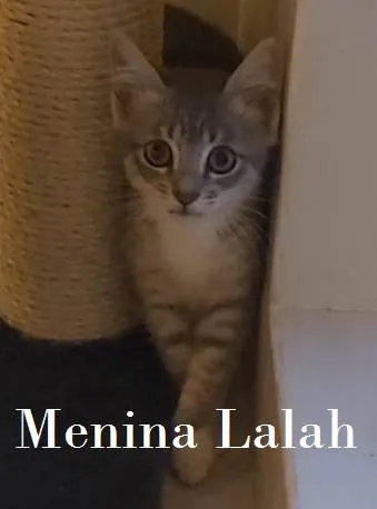 LALAH - fêmea, 70 dias, muito tímida ainda, brincalhona, aguarda por uma adoção responsável. A pessoa que adotá-la, terá de ter paciência para conquistá-la. O futuro tutor deverá se responsabilizar pela CASTRAÇÃO OBRIGATÓRIA, no tempo certo. Será entregue para quem morar em APARTAMENTO ABSOLUTAMENTE TELADO, sem rotas de fuga.
