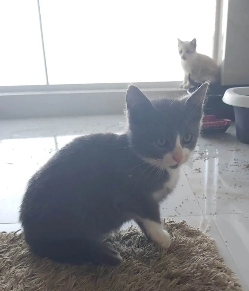 LELÉCO - macho, 70 dias, muito tímido ainda, brincão, aguarda por uma adoção responsável. A pessoa que adotá-lo, terá de ter paciência para conquistá-lo. O futuro tutor deverá se responsabilizar pela CASTRAÇÃO OBRIGATÓRIA, no tempo certo. Será entregue para quem morar em APARTAMENTO ABSOLUTAMENTE TELADO, sem rotas de fuga.