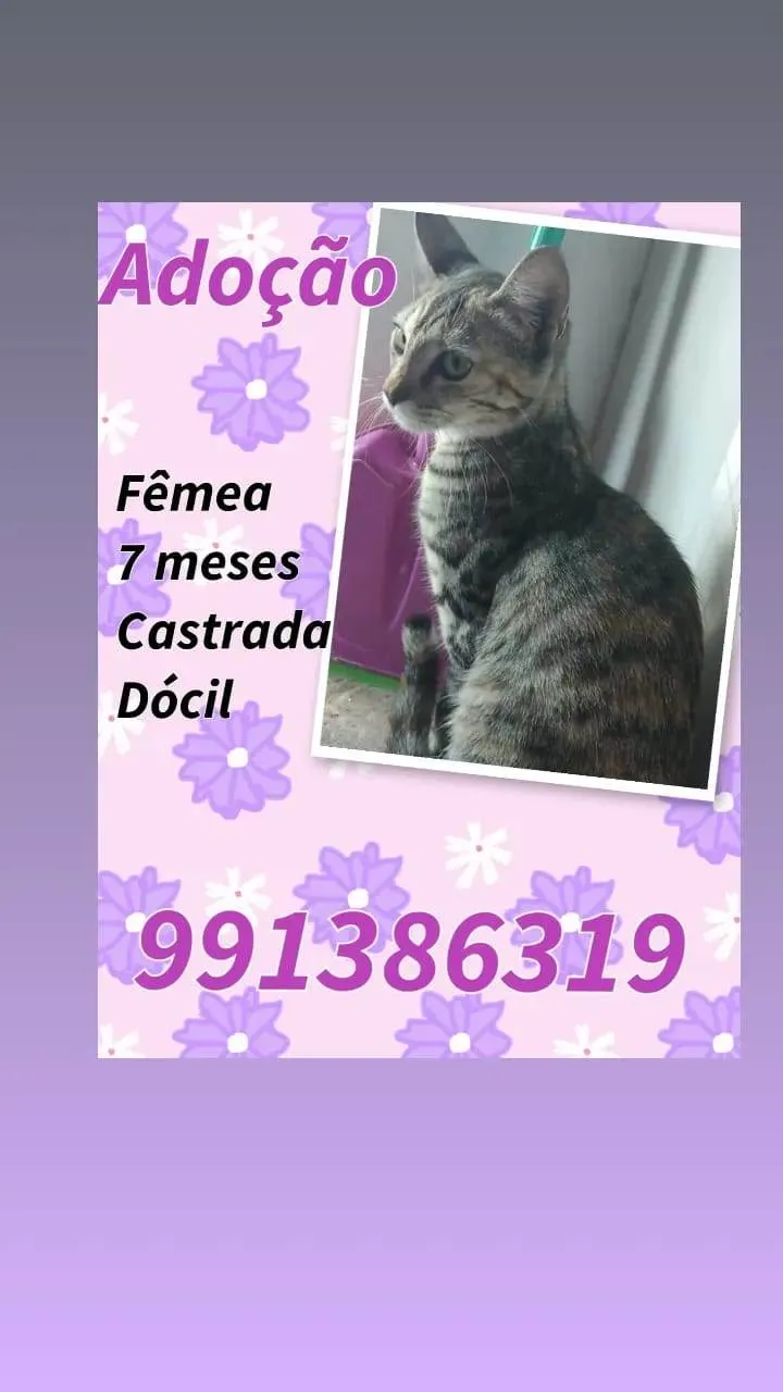 LUANA - 7 meses, castrada. Muito dócil, carinhosa e carente. Amassa pãozinho e ronrona como ninguém. Adora a companhia de humanos. Será entregue para quem morar em LAR SEGURO, sem acessoa a rua.