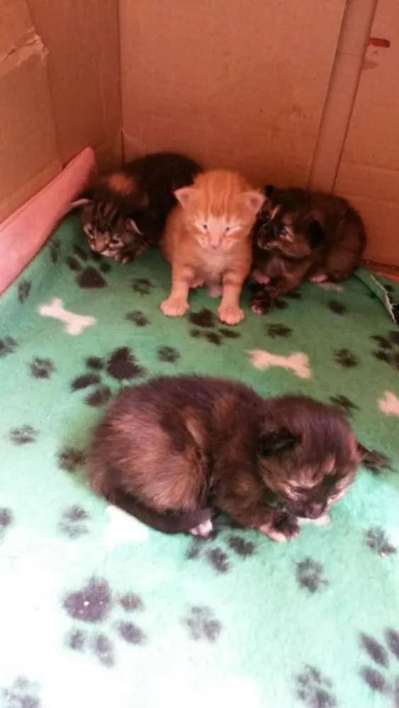 Lindos filhotes para adoção, a mãezinha foi resgatada de uma parada de ônibus. São 3 fêmeas e 1 macho, estão com 18 dias, serão doados com 45 dias. A mãezinha também precisa de adoção, muito carinhosa e ronronnenta, adora colo. A mãezinha tem pelo longo, pai desconhecido.