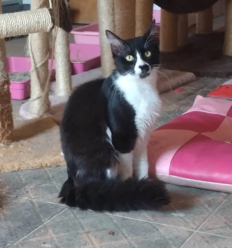 MEU BEM, gato macho, 3 anos +ou-, castrado. Está sendo socializado, para aguardar a sua vez de adoção. É dócil, mas arisco, viveu sempre na rua! O futuro tutor deverá se encarregar de fazer o Teste pra Fiv e Felv, e residir em APARTAMENTO absolutamente SEGURO e TELADO, sem risco de fuga.