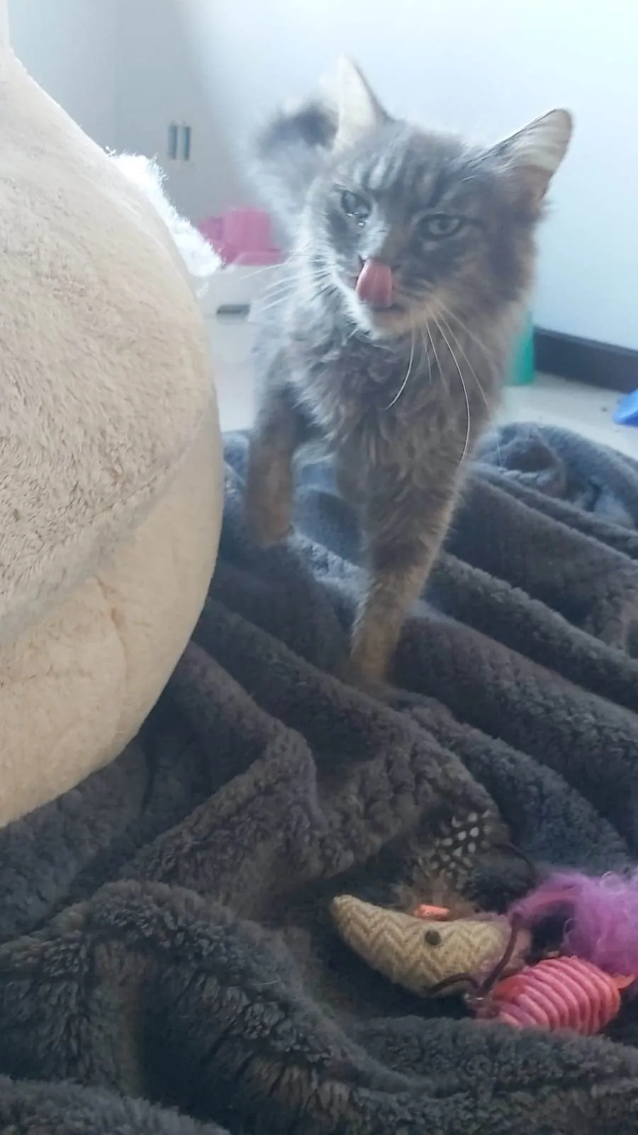 MONNA - Linda felina PELUDA, CASTRADA, negativa para Fiv e Felv, tem aproximadamente 14 meses. Foi socializada, pois era muito tímida, e agora pede carinho o tempo todo. Convive bem com outros gatos. Ela teve Rinotraqueite. Os outros felinos precisam necessariamente serem vacinados. Só será entregue para quem residir em APARTAMENTO absolutamente TELADO, ou PÁTIO com telas e SEGURO, sem acesso a rua.