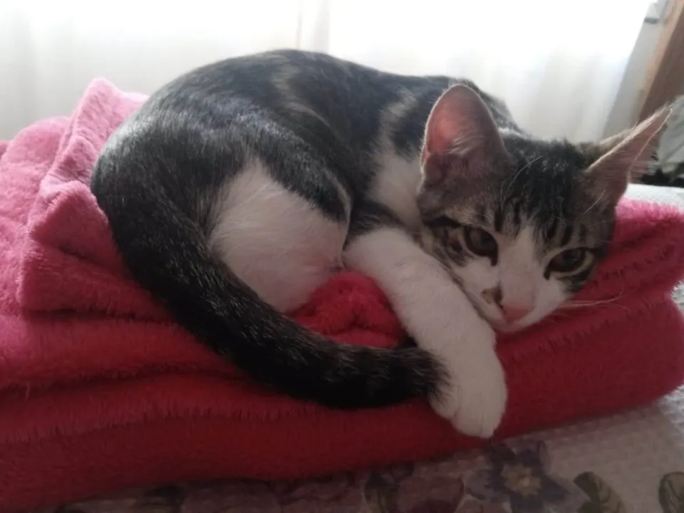 NINA -, +ou- 4 meses, negativa para Fiv Felv, Nina é ligada no 220, muito esperta, muito feliz, e adora conversar e pular, dentro de casa. Se dá bem com outros animais, não é grudenta, mas gosta de carinho. Nina apareceu na casa de um casal que tinha cachorros, mas aos 40 dias, ela tinha uma coragem de adulto, enfrentou os cães e se abrigou. Nina foi entregue para adoção aos 50 dias, mas infelizmente os barulhos que a Nina faz de madrugada, já rendeu multas e muita incomodação com a vizinha do apartamento de baixo. Ela precisa urgente de um novo LAR, cheio de amor e paciência, para transformá-la em um mocinha de verdade! Será entregue CASTRADA, e par quem residir em CASA/APARTAMENTO absolutamente TELADO e SEGURO.