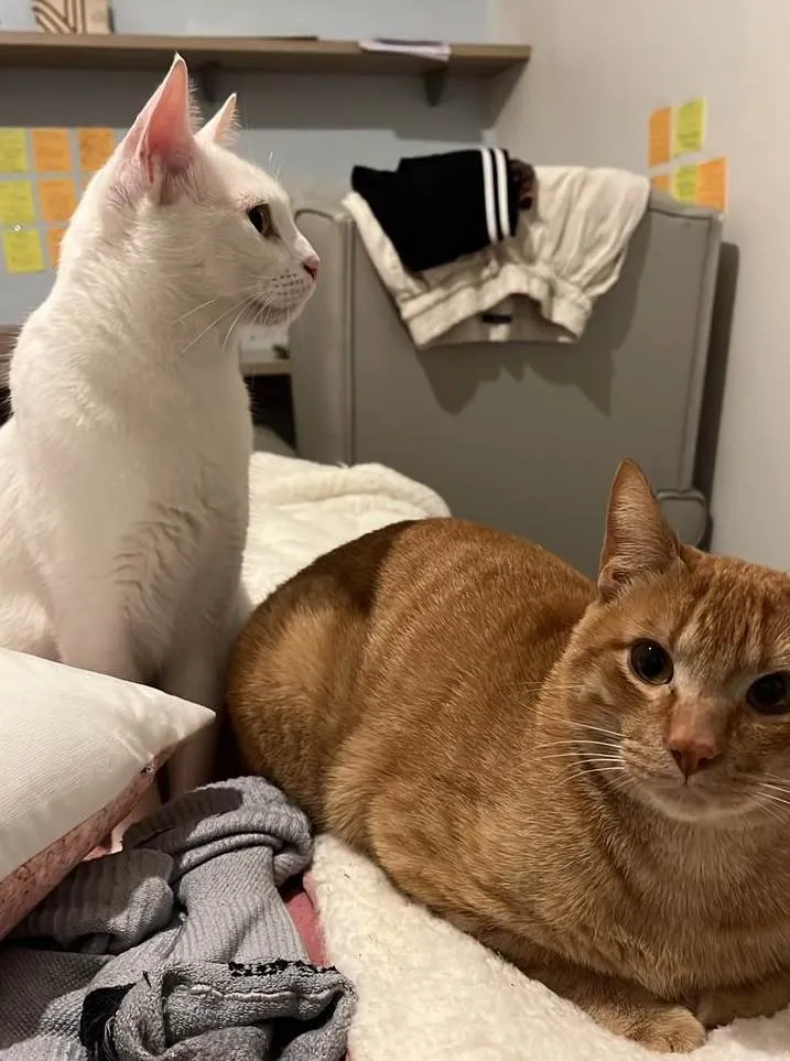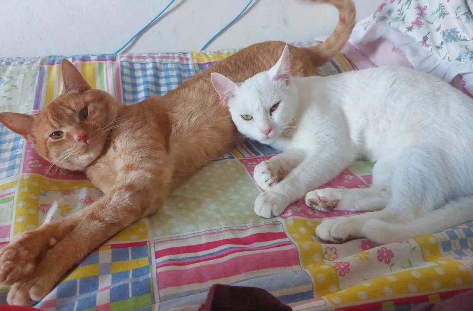 Idade entre 15 e 18 meses, castrados, negativos para Fiv e Felv. Se dão bem "somente entre eles". São carinhosos, comportados, Oliver (Branco), tem deficiência auditiva. Foram encontrados na rua, e resgatados por uma moça, que precisou se mudar, então eles ficaram para adoção novamente. Foram para um lar temporário, ficaram por lá algum tempo, até serem adotados, mas infelizmente não se adaptaram com os outros gatos da casa, estressando os felinos, que já residiam lá, ao ponto de fazerem as necessidades em locais variados. Foram adotados outra vez, mas o casal se separou , e eles ficaram sem lar de novo. Voltaram para o LT, onde aguardam por uma nova família, que os receba com muito amor, e que fique com eles, sem volta, desta vez!