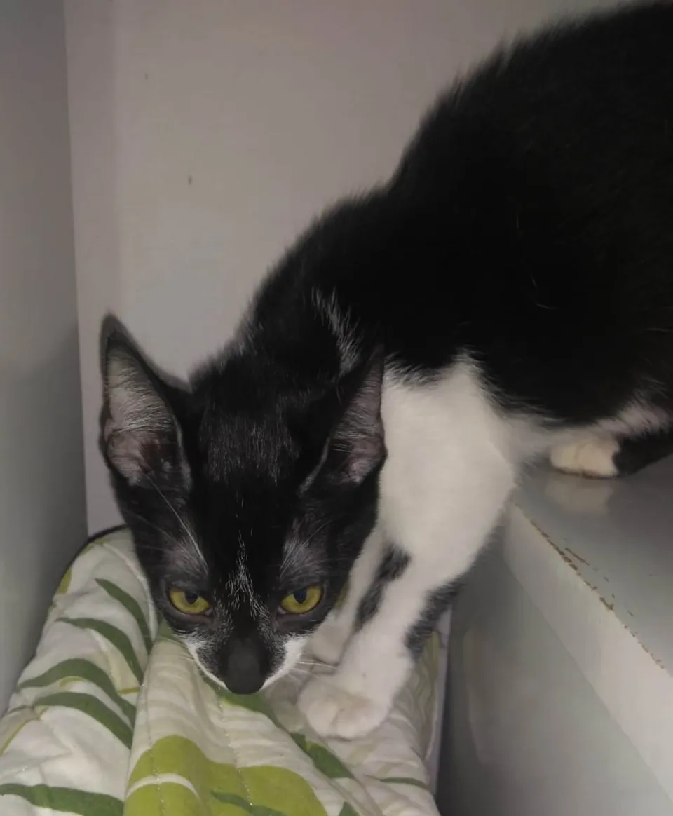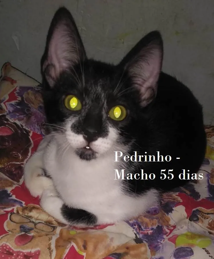 PEDRINHO - frajola, 55 dias. Foi resgatado da rua, junto com os maninhos. É um pouco assustado. O futuro tutor deverá se responsabilizar pela CASTRAÇÃO OBRIGATÓRIA, no tempo certo, e ter um LAR SEGURO, sem rotas de fuga.