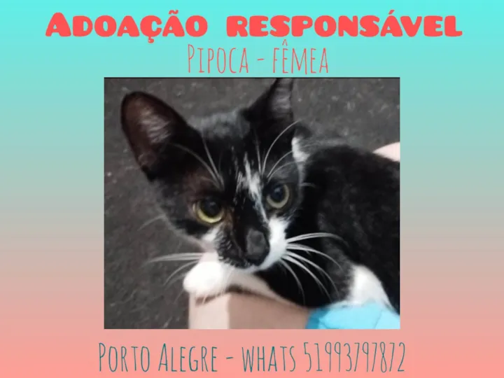 A gatinha Pipoca foi descartada como lixo logo após ter filhotes. Está em busca de um lar cheio de amor! É muito dengosa e adora colo e carinho. Ainda não foi testada pra fiv e felv e a castração ficará por conta do adotante um vez que estou gastando muito com o lar temporário. Será doada apenas para lares telados e mediante assinatura de termo de adoção/responsabilidade.