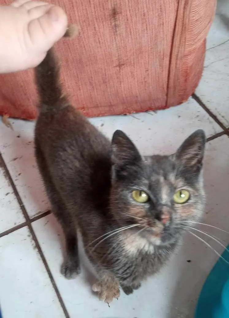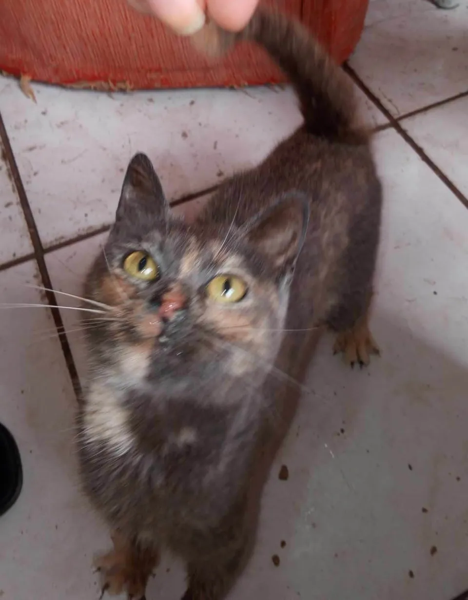 PITCHULA - Felina fêmea, +ou- 7 meses, castrada, negativa para Fiv e Felv. É uma gata dengosa, gosta de carinho, gosta da presença de humanos, ideal para fazer companhia. A Pitchula está para ADOÇÃO RESPONSÁVEL e muito amorosa. Será entregue para quem residir em LAR TELADO e SEGURO, sem rotas de fuga.