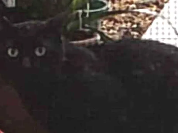 É um gatinho todo preto. Tem um porte pequeno, em comparação com a média dos gatos. ??