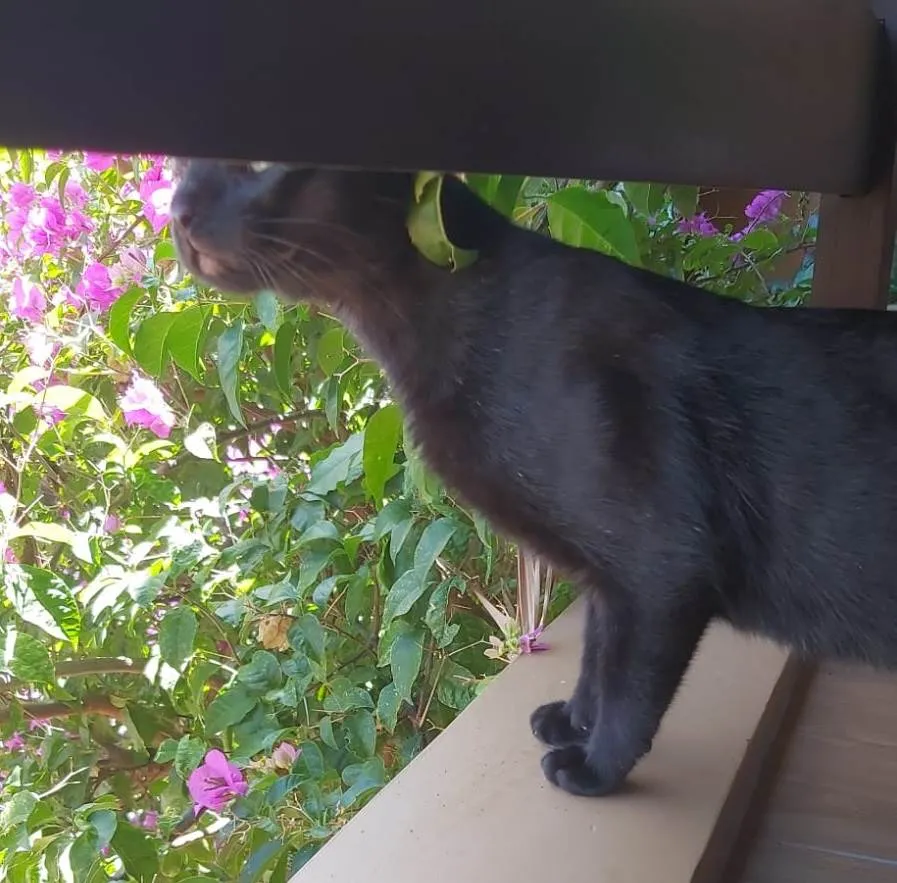 Este felino apareceu no pátio de uma amiga, já castrado.