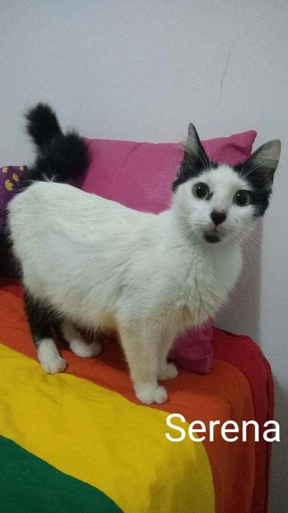 Serena é uma gatinha que foi resgatada na Vila Farrapos, morava em condições precárias, passava fome e sede, por não ser castrada ficou grávida, sentindo necessidade pedia comida para os vizinhos. Conseguimos o LT e seus filhotes foram doados mas infelizmente a Serena ainda não.