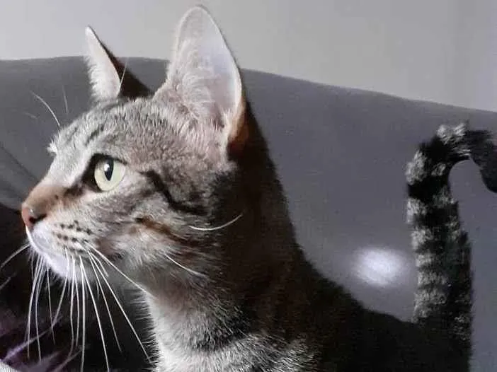 SHEILA - Tigrada, 1 ano, Castrada, negativa Fiv/Felv. É uma mocinha carinhosa, gosta de estar onde os humanos estão. É territorialista, mas não é agressiva e nem briga com os outros. O futuro tutor deverá morar em Lar Seguro, sem rotas de fuga, e ter muito amor para esta SHEILA!