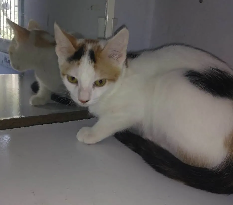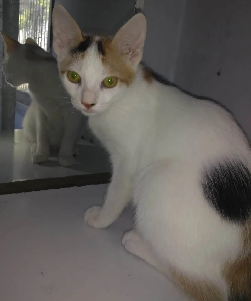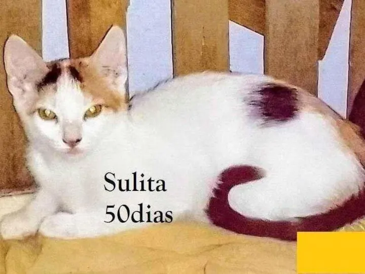 SULITA - tricolor, 55 dias. Foi resgatada da rua, junto com os maninhos. É um pouco assustada. O futuro tutor deverá se responsabilizar pela CASTRAÇÃO OBRIGATÓRIA, no tempo certo, e ter um LAR SEGURO, sem rotas de fuga.