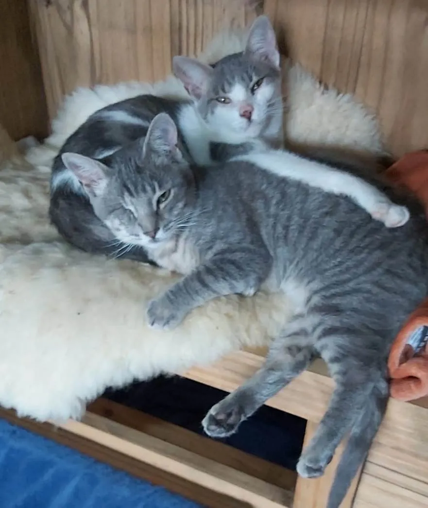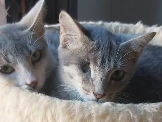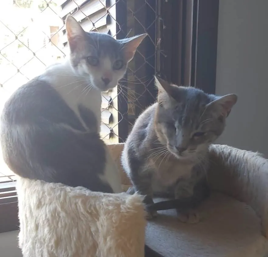 (Valentino e Bebeínha) - Casal de irmãos, Idade entre 6/7 meses, estão castrados, são negativos para Fiv e Felv, aguardam por uma adoção conjunta, pois passam o tempo todo grudados, entre brincadeiras. São gatinhos amorosos, e muito especiais!
