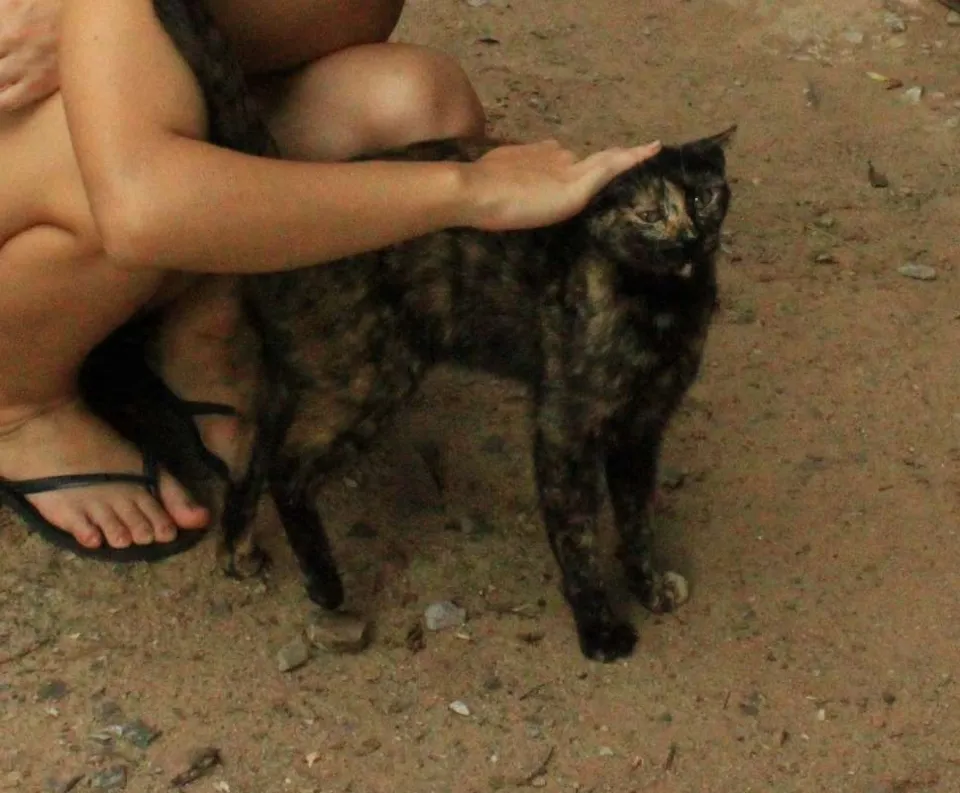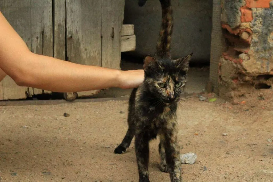 Veridiana foi encontrada muito magra em uma construção abandonada, era arisca no início mas depois de algumas visitas ela saiu do esconderijo, agora é puro amor. Ela adora carinho e atenção, fica conversando e amassando pãozinho com as patinhas. Não sabe ficar no colo ainda, mas logo vai aprender. Não está castrada, mas isso será providenciado antes da adoção.