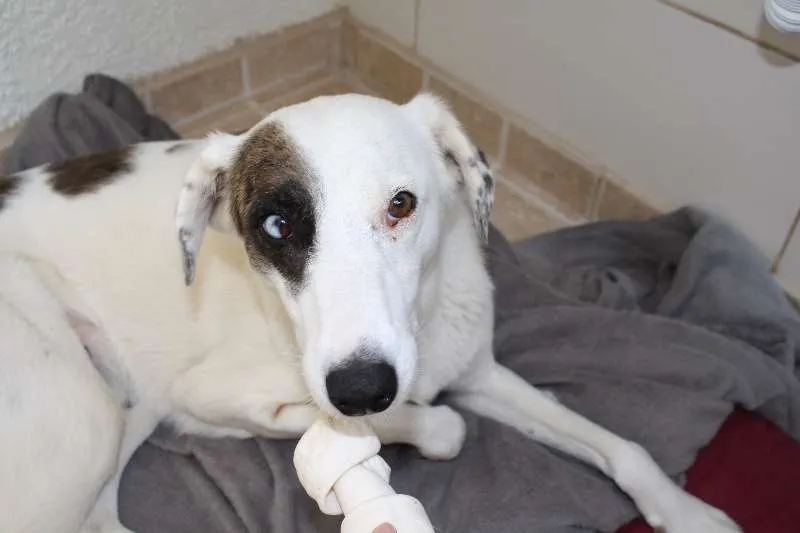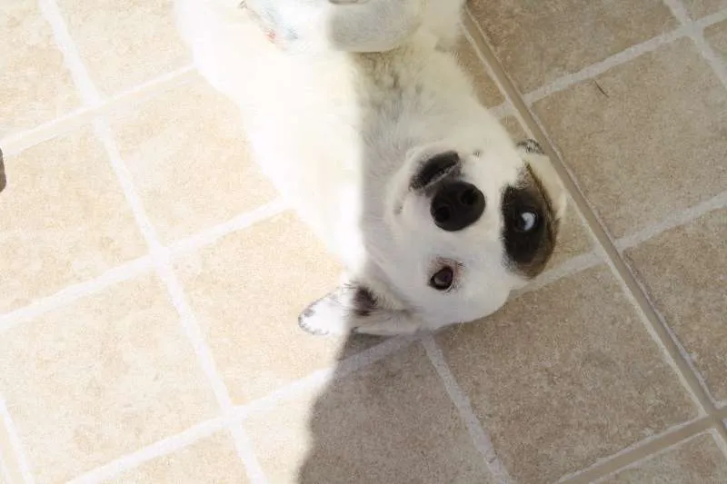 Essa é a Cookie, ela é deficiente física, não tem a patinha da frente devido a um atropelamento. Mas é super adaptada e nem sabe que tem só 3 patinhas, adora correr e brincar com outros cães,