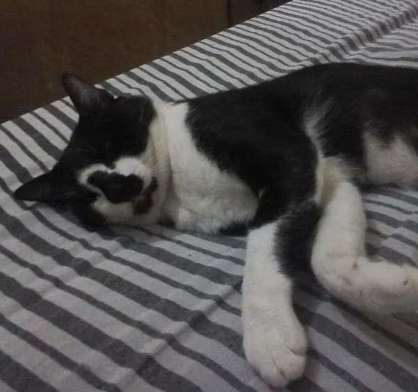 Procuro um gato preto com branco de por volta de 3 anos de idade que foi levado da frente de casa no Cassino enquanto tomava Sol, rua do camping municipal, no dia 24/02 por volta das 9:00 da manhã.