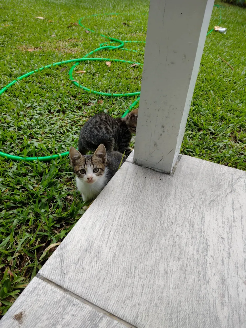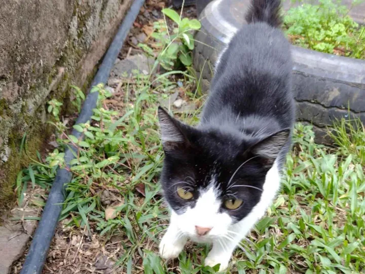 Gata fêmea abandonada no meu patio. Estava grávida e ganhou 4 gatinhos, mas não tenho como ficar com eles, pois tem cachorros aqui e tenho medo que machuquem eles. Gatinhos com 2 meses de vida e a mamãe não sei, mas é bem pequena e muito dócil