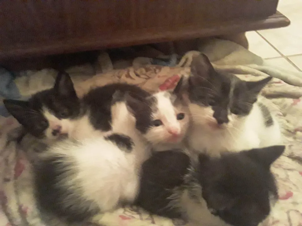Encontrei uma gatinha magrinha na rua que teve 5 filhotes, 4 fêmeas e um macho, não tenho tempo para eles, moro em apartamento e já tenho outros 2 gatos, podem ser doados separadamente, apenas entre em contato. *OBS: Nenhum castrado(a), já comem ração e estão aprendendo a usar areia.