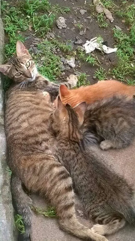 Uma gatinha com seus três bebes, foi deixada na casa da minha sogra, um já foi adotado, tem ainda, a mamãe, um amarelinho, e um tigradinho, são todos fêmeas, não temos como ficar com eles, pq todos nós já temos gatinhos e cachorrinhos. Eles estão sendo cuidados na casa da minha sogra, onde tem um a caminha, tem comida e água fresca.