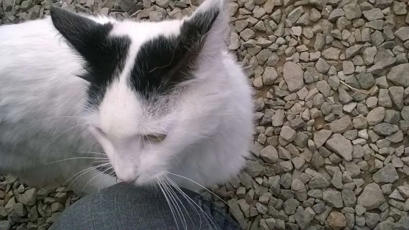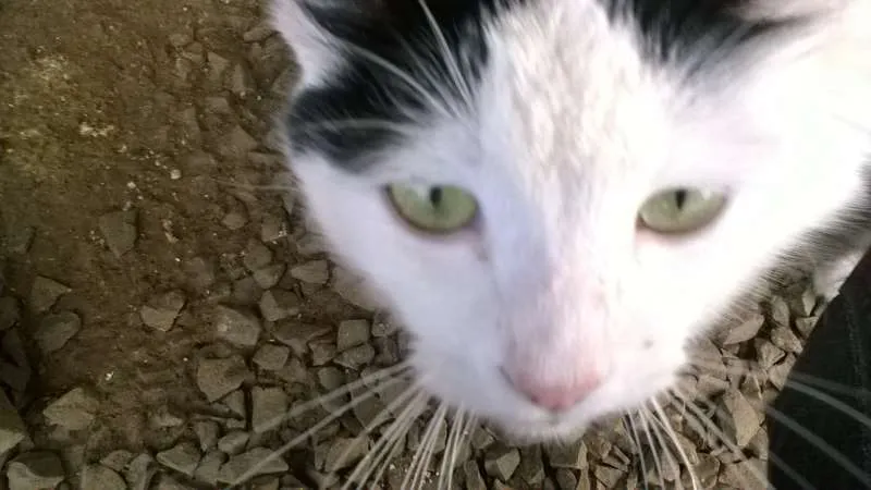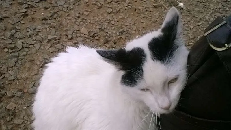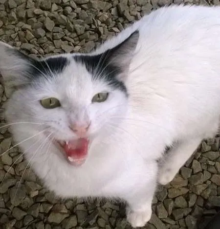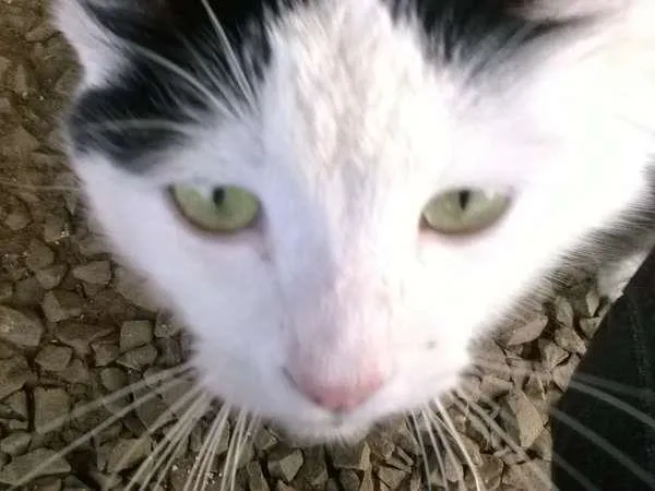 Doa-se lindo gatinho carinhoso achado no bairro Vicentina- SL. Ele apareceu em um dia muito chuvoso, todo molhado e extremamente faminto. Deve ter aproximadamente 7 a 8 meses, macho não castrado. Possui brilhantes olhos verdes, pelo branquinho com detalhe de orelhas e rabo pretos. É muito carinhoso, sociável e adora brincar. Está comendo somente ração e usa caixa de areia para suas necessidades. Ótima companhia para quem procura um amigo.