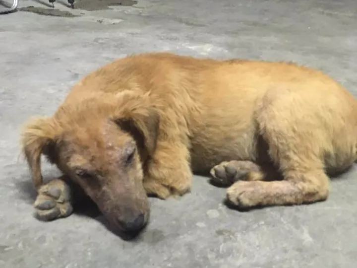 Esse cachorrinho apareceu aqui perto de casa, alimentamos ele, banho, remédio para Vermes, porém não temos como ficar pois temos 3 cachorros e nosso pátio é muito pequeno, ele precisa de cuidados de um especialista pra tratar da pelagem mas não temos como pagar essas consultas.
