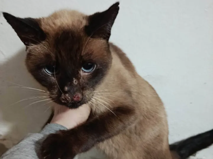 O Mel é um gato doce, carente e gosta muito de colo, mas sem muitas carícias. Estou em processo de mudança de casa, onde tem vários cachorros que não gostam de gatos, ele está com esporotricose e necessita de tratamento com Itraconazol. Estou fazendo este tratamento, mas ainda está com feridas evidentes...