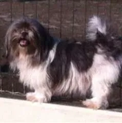 Lhasa Apso, fêmea, pequeno porte, cores branco, preto e cinza entremeado ao preto, baixinha, pelo muito fino, não é abundante. Lombo preto, somente a parte entre a cabeça e lombo, faixa branca, branca também a barriga, patinhas e parte da cauda. Focinho preto acinzentado com manchado cor ferrugem leve, olhos pequenos e amendoados. dentinhos tortinhos e não regulares, principalmente os inferiores.Está desaparecida desde 06 de Outubro de 2014. Dócil amável e com muita saudades de nós