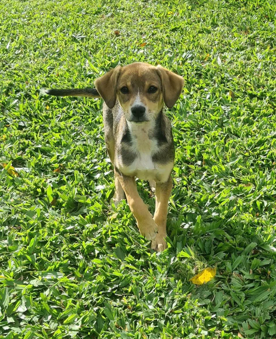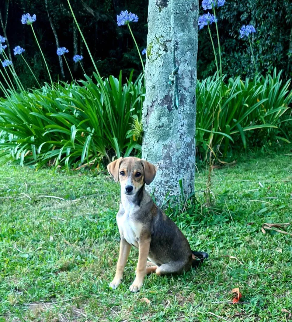 Esta cadelinha é fruto do abandono de uma cadela prestes a parir num terreno baldio próximo a minha casa. Fiquei com pena de vê-la tão magra em sua gestação avançada e a levei pra casa. Foram apenas 5 dias de espera até que desse a luz a 8 lindos cachorrinhos. Aeronave recebeu este nome porque sempre foi rápida como um avião! Evoluiu sempre mais rápido que a maioria dos seus irmãos! Muito querida e bem calminha, adora bebês e crianças, se da bem com gatos, aves e outros cães. Está com o protocolo vacinal básico completo comprovado em carteira de vacinação (4 doses de vacina polivalente, 1 dose de vacina antirrábica e 1 dose de vacina da gripe intranasal. Todas as doses importadas) e tem castração garantida sem custos ao adotante quando atingir 5 meses de idade.