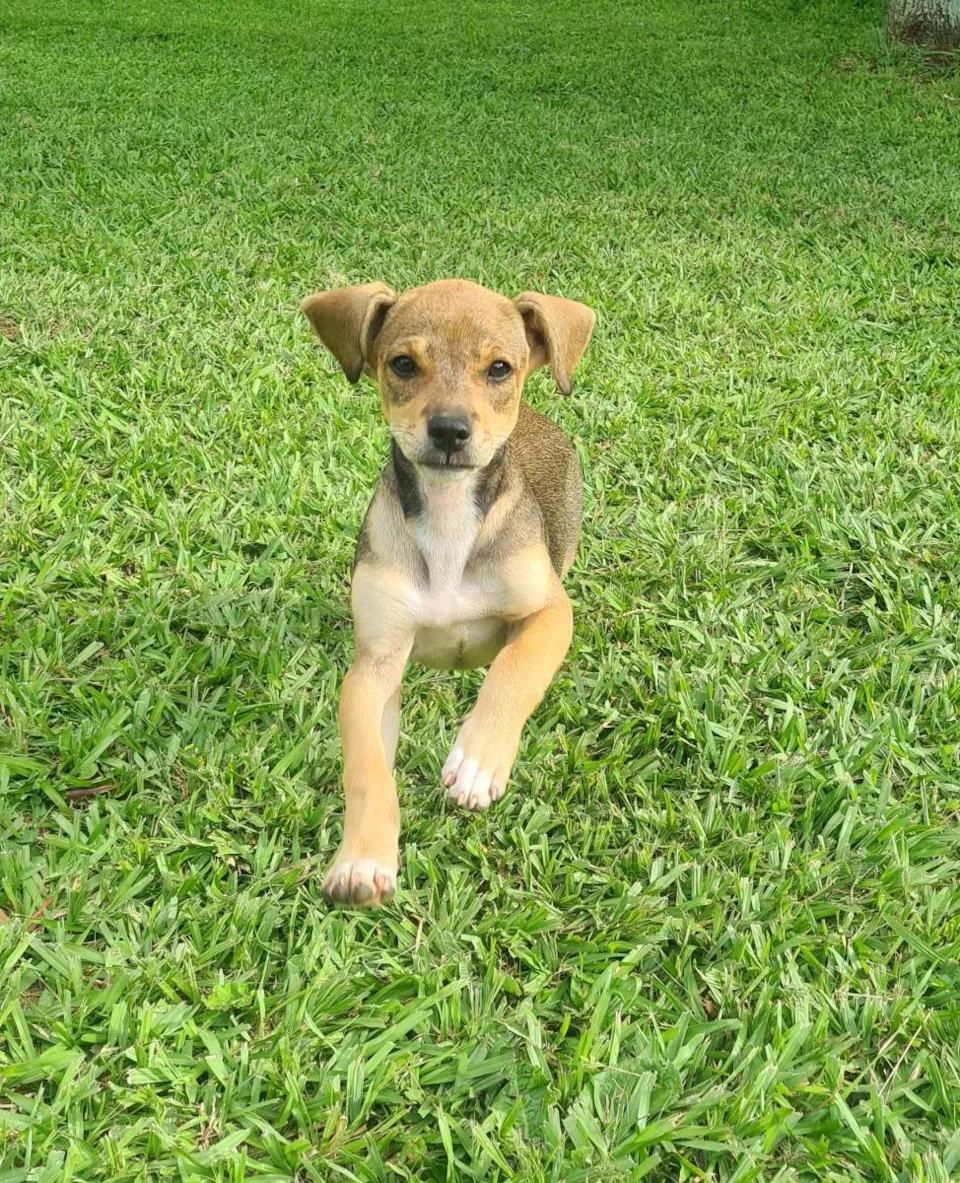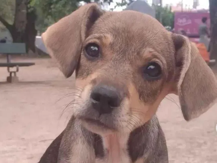 Esta cadelinha é fruto do abandono de uma cadela prestes a parir num terreno baldio próximo a minha casa. Fiquei com pena de vê-la tão magra em sua gestação avançada e a levei pra casa. Foram apenas 5 dias de espera até que desse a luz a 8 lindos cachorrinhos. Avião recebeu este nome porque sempre foi a mais rápida dos seus irmãos, evoluindo sempre mais rápido que eles! Muito querida e brincalhona, adora bebês e crianças, se dá bem com gatos, aves e outros cães. Já está com duas doses de vacina polivalente importada (comprovada em carteira de vacinação) e tem castração sem custos ao adotante quando atingir 5 meses de idade.