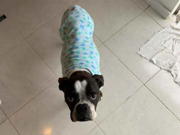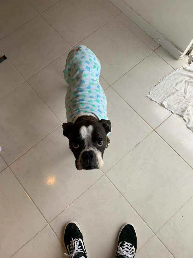 Blue é um cão muito amoroso, tem em torno de 4 aninhos e adora brincar e ficar pertinho. Ele é porte médio e da raça Boxer. Já está castrado e com as vacinas em dia. Adote esse querido!