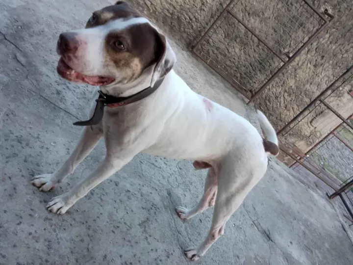 Essa com os filhotes é a mãe dos cãeszinhos para doação o branco com marrom o pai.